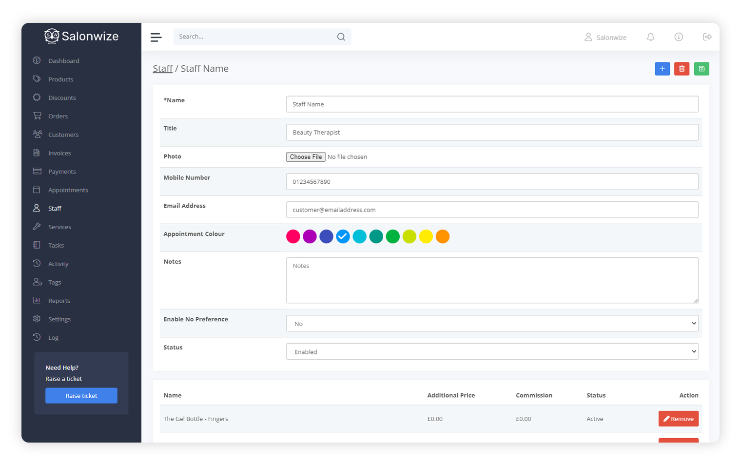 Set and manage staff hours and assign specific services and commission.